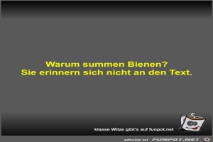 | Warum summen Bienen? Bild (17.32 KB) 7Lustiges → klasse Sprüche und Witze | Lustiges → klasse Sprüche und Witze | 19.03.23-10:48 | Fossy | |