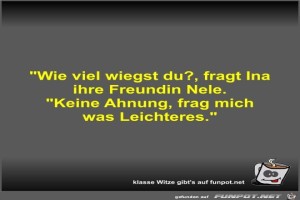 | Wie viel wiegst du? Bild (25.41 KB) 7Lustiges → klasse Sprüche und Witze | Lustiges → klasse Sprüche und Witze | 18.03.23-10:07 | Fossy | |