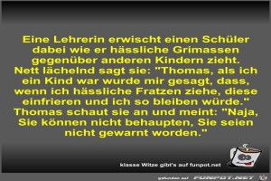 | Eine Lehrerin erwischt einen Schüler dabei wie er hässliche Bild (56.27 KB) 5Lustiges → klasse Sprüche und Witze | Lustiges → klasse Sprüche und Witze | 19.03.23-13:25 | Fossy | |