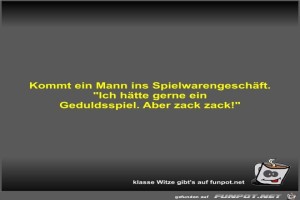 | Kommt ein Mann ins Spielwarengeschäft Bild (19.3 KB) 7Lustiges → klasse Sprüche und Witze | Lustiges → klasse Sprüche und Witze | 17.03.23-13:54 | Fossy | |