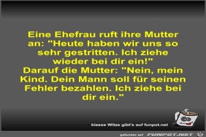 | Eine Ehefrau ruft ihre Mutter an Bild (40.1 KB) 8Lustiges → klasse Sprüche und Witze | Lustiges → klasse Sprüche und Witze | 16.03.23-10:50 | Fossy | |