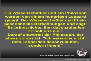 | Ein Wissenschaftler und ein Philosoph werden von einem... Bild (54.99 KB) 5Lustiges → klasse Sprüche und Witze | Lustiges → klasse Sprüche und Witze | 14.03.23-17:53 | Fossy | |