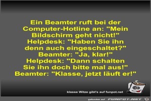 | Ein Beamter ruft bei der Computer-Hotline an Bild (47.69 KB) 6Lustiges → klasse Sprüche und Witze | Lustiges → klasse Sprüche und Witze | 12.03.23-13:35 | Fossy | |