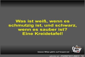 | Was ist weiß, wenn es schmutzig ist, und schwarz, wenn es... Bild (26.2 KB) 1Lustiges → klasse Sprüche und Witze | Lustiges → klasse Sprüche und Witze | 14.03.23-10:08 | Fossy | |