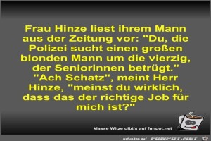 | Frau Hinze liest ihrem Mann aus der Zeitung vor Bild (48.96 KB) 7Lustiges → klasse Sprüche und Witze | Lustiges → klasse Sprüche und Witze | 08.03.23-10:08 | Fossy | |