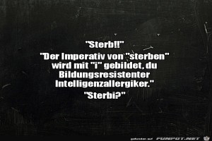 | Intelligenzallergiker Bild (88.68 KB) 8Lustiges → klasse Sprüche und Witze | Lustiges → klasse Sprüche und Witze | 04.03.23-15:56 | ||