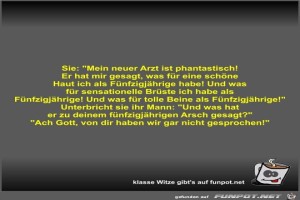 | Sie: Mein neuer Arzt ist phantastisch! Er hat mir gesagt Bild (36.55 KB) 7Lustiges → klasse Sprüche und Witze | Lustiges → klasse Sprüche und Witze | 05.03.23-12:55 | Fossy | |