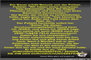| Ein Bauer erhält Besuch von der Polizei Bild (102.28 KB) 8Lustiges → klasse Sprüche und Witze | Lustiges → klasse Sprüche und Witze | 06.03.23-11:09 | Fossy | |