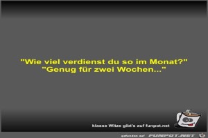 | Wie viel verdienst du so im Monat? Bild (17.93 KB) 8Lustiges → klasse Sprüche und Witze | Lustiges → klasse Sprüche und Witze | 25.02.23-16:03 | Fossy | |