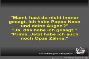 | Mami, hast du nicht immer gesagt, ich habe Papas Nase und Bild (35.66 KB) 5Lustiges → klasse Sprüche und Witze | Lustiges → klasse Sprüche und Witze | 24.02.23-12:29 | Fossy | |