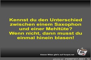 | Kennst du den Unterschied zwischen einem Saxophon und einer Bild (33.59 KB) 9Lustiges → klasse Sprüche und Witze | Lustiges → klasse Sprüche und Witze | 21.02.23-10:53 | Fossy | |