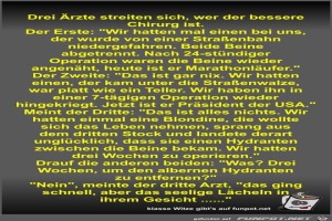 | Drei Ärzte streiten sich Bild (115.61 KB) 3Lustiges → klasse Sprüche und Witze | Lustiges → klasse Sprüche und Witze | 18.02.23-10:40 | Fossy | |