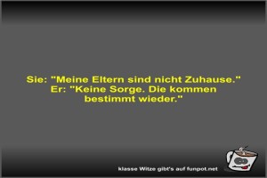| Witz über Abwesenheit der Eltern Bild (40.26 KB) 1Lustiges → klasse Sprüche und Witze | Lustiges → klasse Sprüche und Witze | 05.07.-06:24 | Klara90 | |