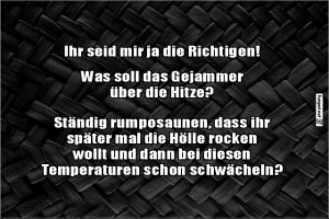 | Jammern über das Wetter Bild (62.17 KB) 2Lustiges → klasse Sprüche und Witze | Lustiges → klasse Sprüche und Witze | 04.07.-10:35 | Pascal-1968 | |