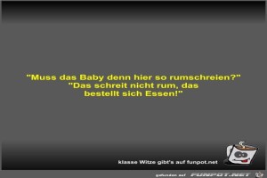 | Muss das Baby denn hier so rumschreien? Bild (18.73 KB) 5Lustiges → klasse Sprüche und Witze | Lustiges → klasse Sprüche und Witze | 15.02.23-10:43 | Fossy | |