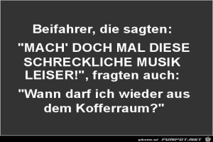 | Beifahrer Bild (35.28 KB) 9Lustiges → klasse Sprüche und Witze | Lustiges → klasse Sprüche und Witze | 15.02.23-13:01 | ||