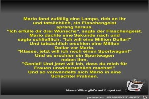 | Mario fand zufällig eine Lampe Bild (51.03 KB) 7Lustiges → klasse Sprüche und Witze | Lustiges → klasse Sprüche und Witze | 14.02.23-14:27 | Fossy | |
