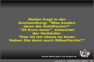 | Stefan fragt in der Zoohandlung Bild (32.44 KB) 7Lustiges → klasse Sprüche und Witze | Lustiges → klasse Sprüche und Witze | 11.02.23-10:41 | Fossy | |