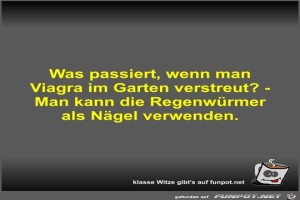| Was passiert, wenn man Viagra im Garten verstreut? Bild (27.77 KB) 4Lustiges → klasse Sprüche und Witze | Lustiges → klasse Sprüche und Witze | 02.02.23-09:14 | Fossy | |