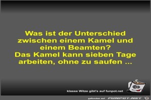 | Was ist der Unterschied zwischen einem Kamel und einem... Bild (31.44 KB) 2Lustiges → klasse Sprüche und Witze | Lustiges → klasse Sprüche und Witze | 01.02.23-12:54 | Fossy | |