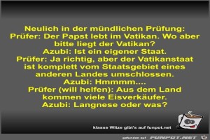 | Neulich in der mündlichen Prüfung Bild (51.77 KB) 5Lustiges → klasse Sprüche und Witze | Lustiges → klasse Sprüche und Witze | 02.02.23-12:41 | Fossy | |