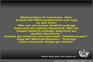 | Weihnachten im Irrenhaus Bild (39.89 KB) 4Lustiges → klasse Sprüche und Witze | Lustiges → klasse Sprüche und Witze | 31.01.23-11:17 | Fossy | |