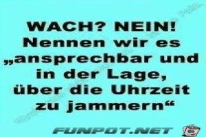| Wach Bild (16.04 KB) 8Lustiges → klasse Sprüche und Witze | Lustiges → klasse Sprüche und Witze | 12.01.23-11:45 | ||
