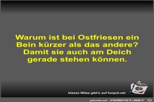 | Warum ist bei Ostfriesen ein Bein kürzer als das andere? Bild (28.79 KB) 4Lustiges → klasse Sprüche und Witze | Lustiges → klasse Sprüche und Witze | 14.01.23-13:11 | Fossy | |