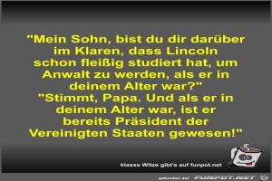 | Mein Sohn, bist du dir darüber im Klaren, dass Lincoln... Bild (46.29 KB) 6Lustiges → klasse Sprüche und Witze | Lustiges → klasse Sprüche und Witze | 13.01.23-11:52 | Fossy | |