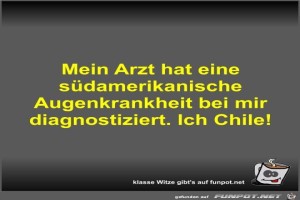 | Mein Arzt hat eine südamerikanische Augenkrankheit bei mir Bild (29.42 KB) 6Lustiges → klasse Sprüche und Witze | Lustiges → klasse Sprüche und Witze | 12.01.23-11:11 | Fossy | |
