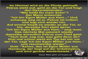 | Im Himmel wird an die Pforte geklopft Bild (88.65 KB) 7Lustiges → klasse Sprüche und Witze | Lustiges → klasse Sprüche und Witze | 31.12.22-18:02 | Fossy | |