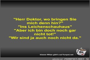 | Herr Doktor, wo bringen Sie mich denn hin? Bild (30.83 KB) 7Lustiges → klasse Sprüche und Witze | Lustiges → klasse Sprüche und Witze | 01.01.23-18:42 | Fossy | |