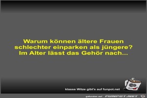 | Warum können ältere Frauen schlechter einparken als jüngere? Bild (23.02 KB) 6Lustiges → klasse Sprüche und Witze | Lustiges → klasse Sprüche und Witze | 31.12.22-10:22 | Fossy | |