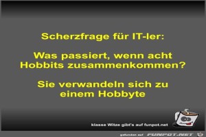 | Scherzfrage für IT-ler Bild (29.92 KB) 6Lustiges → klasse Sprüche und Witze | Lustiges → klasse Sprüche und Witze | 01.01.23-10:34 | Fossy | |