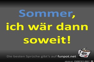 | Sommer Bild (54.22 KB) 7Lustiges → klasse Sprüche und Witze Für den Sommer bin ich schon lange bereit. Eigentlich immer, wenn man es genau nimmt ;-) | Lustiges → klasse Sprüche und Witze | 03.01.23-13:56 | Fossy | |