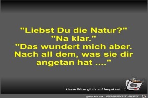 | Liebst Du die Natur? Bild (29.74 KB) 5Lustiges → klasse Sprüche und Witze | Lustiges → klasse Sprüche und Witze | 29.12.22-13:39 | Fossy | |