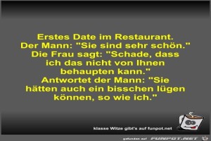 | Erstes Date im Restaurant Bild (39.72 KB) 6Lustiges → klasse Sprüche und Witze | Lustiges → klasse Sprüche und Witze | 30.12.22-11:08 | Fossy | |