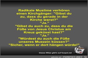 | Radikale Muslime verhören einen Kirchgänger Bild (43.93 KB) 9Lustiges → klasse Sprüche und Witze | Lustiges → klasse Sprüche und Witze | 26.12.22-14:59 | Fossy | |