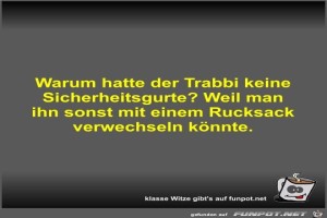| Warum hatte der Trabbi keine Sicherheitsgurte? Bild (28 KB) 5Lustiges → klasse Sprüche und Witze | Lustiges → klasse Sprüche und Witze | 26.12.22-18:54 | Fossy | |