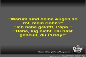 | Warum sind deine Augen so rot Bild (29.86 KB) 2Lustiges → klasse Sprüche und Witze | Lustiges → klasse Sprüche und Witze | 28.12.22-12:43 | Fossy | |