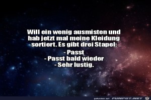 | Kleidung ausmisten Bild (96.4 KB) 8Lustiges → klasse Sprüche und Witze | Lustiges → klasse Sprüche und Witze | 27.12.22-08:05 | Alya | |