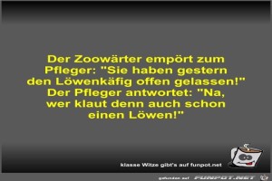 | Der Zoowärter empört zum Pfleger Bild (33.12 KB) 6Lustiges → klasse Sprüche und Witze | Lustiges → klasse Sprüche und Witze | 21.12.22-13:42 | Fossy | |