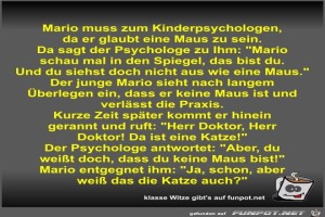 | Mario muss zum Kinderpsychologen Bild (66.49 KB) 7Lustiges → klasse Sprüche und Witze | Lustiges → klasse Sprüche und Witze | 20.12.22-12:21 | Fossy | |