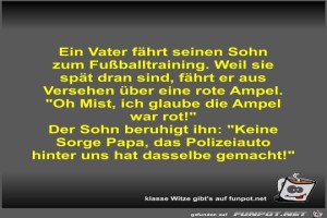 | Ein Vater fährt seinen Sohn zum Fußballtraining Bild (44.71 KB) 7Lustiges → klasse Sprüche und Witze | Lustiges → klasse Sprüche und Witze | 23.11.22-18:05 | Fossy | |