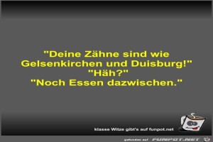 | "Deine Zähne sind wie Gelsenkirchen und Duisburg!" Bild (24.41 KB) 5Lustiges → klasse Sprüche und Witze | Lustiges → klasse Sprüche und Witze | 30.10.22-13:07 | Fossy | |