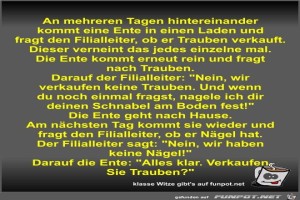 | An mehreren Tagen hintereinander kommt eine Ente in einen... Bild (72.8 KB) 6Lustiges → klasse Sprüche und Witze | Lustiges → klasse Sprüche und Witze | 31.10.22-11:51 | Fossy | |