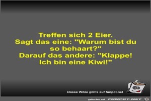 | Treffen sich 2 Eier Bild (27.63 KB) 6Lustiges → klasse Sprüche und Witze | Lustiges → klasse Sprüche und Witze | 29.10.22-19:25 | Fossy | |