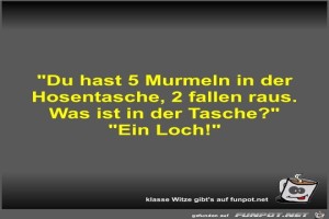| Du hast 5 Murmeln in der Hosentasche Bild (26.46 KB) 7Lustiges → klasse Sprüche und Witze | Lustiges → klasse Sprüche und Witze | 30.10.22-17:52 | Fossy | |