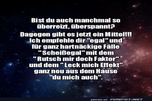| Bist du gestresst? Die Lösung kommt sofort! Bild (119.45 KB) 2Lustiges → klasse Sprüche und Witze | Lustiges → klasse Sprüche und Witze | 04.11.-09:30 | ||