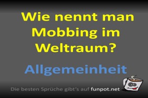 | Witz über Mobbing im Weltraum Bild (61.72 KB) 8Lustiges → klasse Sprüche und Witze Dieses Wortspiel ist doch mal wieder klasse! | Lustiges → klasse Sprüche und Witze | 23.06.-10:26 | ||